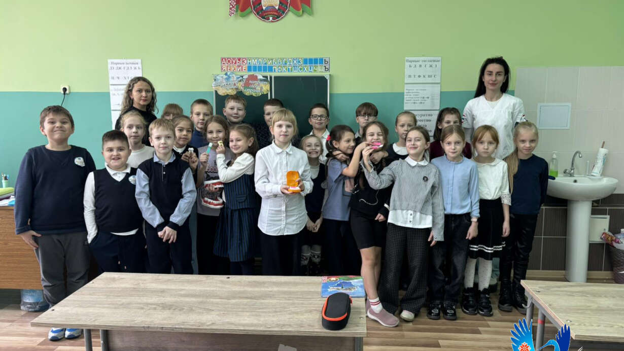 13.11.2025 в ГУО "СШ N22 имени И. П. Бохана" в 3 "А" классе прошел урок гигиены. Ученикам рассказали о том, как предотвратить развитие кариеса зубов и снизить риски его осложнений. На наглядных макетах обучили правильной чистке зубов. Провели врач-стоматолог терапевт Дворецкова В. В., главная медицинская сестра Мамедзаде Т. В