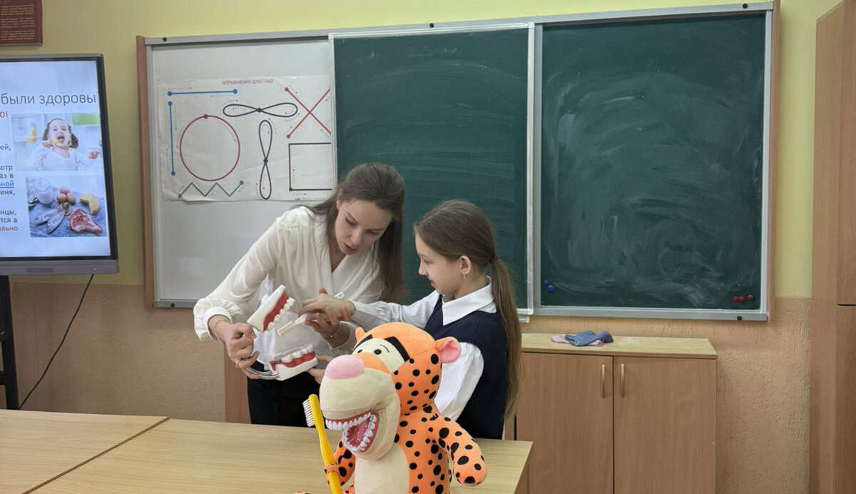 09.03.2026 сотрудники УЗ "Центральная городская стоматологическая поликлиника г. Гродно" провели урок гигиены в ГУО "Гимназия N10 имени Митрополита Филарета (Вахромеева) г. Гродно" в 5 "А" классе. Ученикам рассказали о том, как предотвратить развитие кариеса зубов и снизить риски его осложнений. На наглядных макетах обучили правильной чистке зубов.